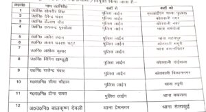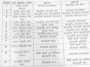 इसके अलावा कई अन्य पुलिस उपनरीक्षकों को भी नए प्रभार दिए गए है। जो कि निम्न सूची में है।