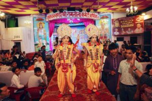 जिससे रामलीला प्रांगण में बैठी जनता भगवान राम की जय जयकार करने लगी। और भाव विभोर होकर बाल रूप में सजे राम लक्ष्मण की आरती कर उनके रूप में भगवान् का आशीर्वाद प्राप्त किया।